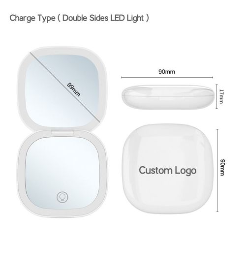 Portable Mini Double-Sided Magnifying LED Light Travel Mirror Personalized Pocket Foldable Mirror